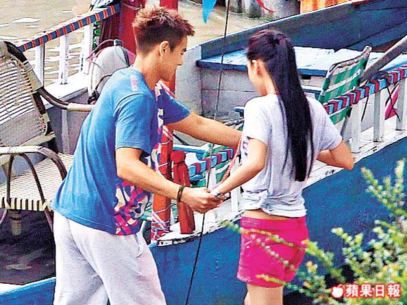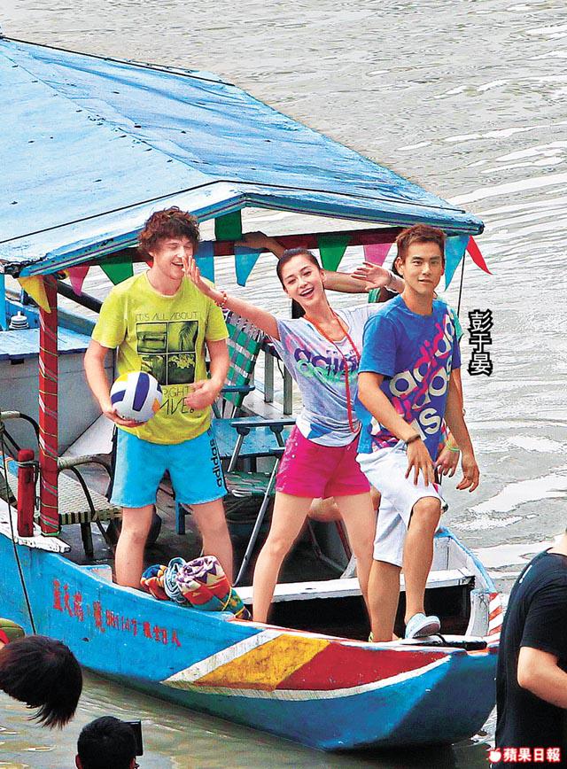 黃曉明女友Angelababy跟因演出電影《翻滾吧!阿信》而大熱的台灣藝人彭于晏,上周五(2日)在台灣風景區碧潭拍攝adidas廣告,他們曾在電影《夏日樂悠悠》中結片緣,非常熟稔。二人除了要拍攝拿着滑板上落樓梯的搞笑相外,還要在船上取景,每當上落船時彭于晏都非常貼心牽着Baby的手扶她。