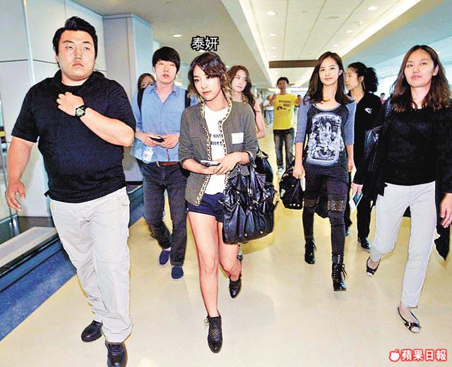 少女時代此行第二度往台北小巨蛋開騷,三晚共三萬張門票已經售罄,成員SooYoung因日前車禍受傷不能前往台灣,令少時此行9人8缺1。少時8名成員昨日一早已穿上短褲晒美腿現身首爾機場吸引記者拍照,當她們抵台時,更吸引了超過400名粉絲一早到機場熱情接機,大批粉絲守在登機門前迎接,沿途不少粉絲跟着拍照,不過,隨行保安強力阻擋,場面混亂。