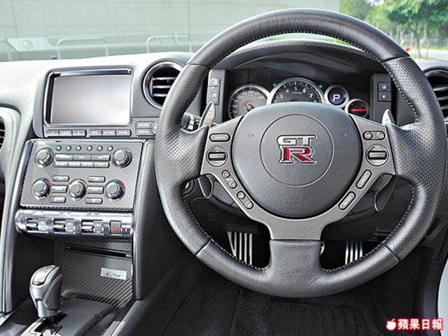 外觀大致上跟上年版本差不多,車頭及車尾新增了LED日間行車燈及後霧燈,整體觀感比以往更充實,在夜間直情有殺氣溢出。進入內櫳,由於今次拍攝的是GTRPremium版本,裝上真皮配仿皮防滑物料的桶椅,若是R35BlackEdition便會安裝Recaro桶椅。中控台佈局大致無變,但多個地方改用碳纖物料,令車重下降,淨重介乎1,730至1,750kg。這部4座位戰神,即使坐滿人也未算擠迫,但我覺得一位美女在旁已足夠。