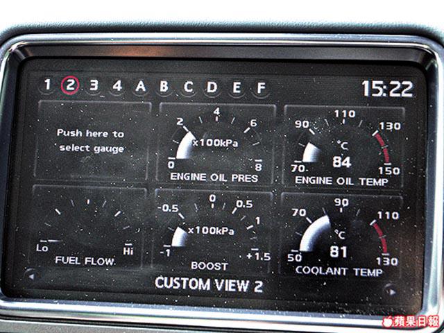 數據還數據,親身體驗最緊要,測試安排在人少車少的將軍澳工業邨進行。儘管數字十分強,但起步時輕踏油門,R35同樣可溫柔地加速,表現平易近人,完全沒有一點難駕馭的感覺。踩深一點,強勁的推背感覺自三千多轉出現,同時透過中控台的屏幕亦睇到G-force數據,廠方公佈0-100km/h只需3秒,重新調校後極速由原本310km/h上調至315km/h。