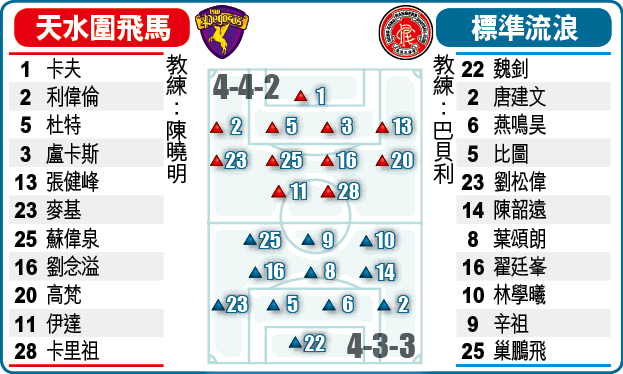 【本報訊】天水圍飛馬經過上季令人失望的球季後,今晚8時在元朗大球場上演的本屆甲組聯賽第2場,將派出7「鬼」的正選陣容,強攻標準流浪,以求打響今季勝門。