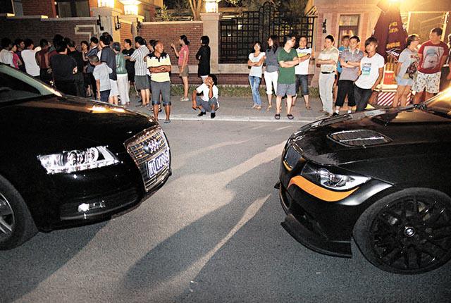 事發在周二(6日)晚約9時,在北京海淀區一住宅小區門口,一輛無牌的寶馬車和一輛車牌為晉O00888的奧迪車司機,因不滿前面的一輛車突然煞停,下車將該車上的司機夫婦毆打至頭破血流,傷者入院後共縫了11針。兩人欲逃離時,被街坊圍堵轉交公安。