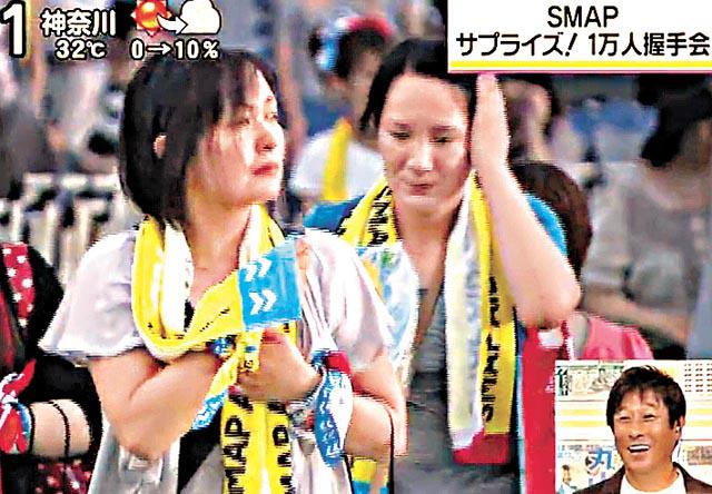 日本人氣組合SMAP將於下周五到北京演唱,而前日他們率先在埼玉縣所澤市舉行出道20周年紀念歌迷聚會,只限定1萬人入場。一向極少與歌迷近距離接觸的SMAP,在今次聚會中卻設有遊戲環節並加插握手會,令萬名fans失控向他們狂抽水!