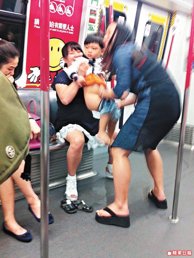 【本報訊】美國CNNGo早前揭示本港公共交通工具內的10大怪現象,其中一怪是當眾大小便。兩名相信是內地人家長,竟然讓隨行的一名尿急男童,於港鐵車廂內就地解決,數十名乘各一同嗅童子尿,各人為之側目。