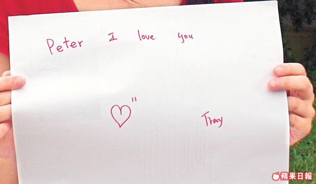 在記者眼中,Tracy仍一臉稚氣,但她坦言已拍過5次拖,初戀是12歲,「最長嗰次拍咗5年,最短3個星期。分手原因係有第3者,或性格不合。」感情路上屢敗,卻未打擊她對愛情的憧憬︰「我心目中理想嘅愛情,係長長久久,你愛吓我,我愛吓你咁,好簡單。」仍未與Peter見過面的Tracy,正期待着首次與Peter見面的來臨,「到時會同佢傾吓偈,互相了解吓先。」最後,Tracy情不自禁下寫了一句「PeterIloveyou」的字句表達傾慕。