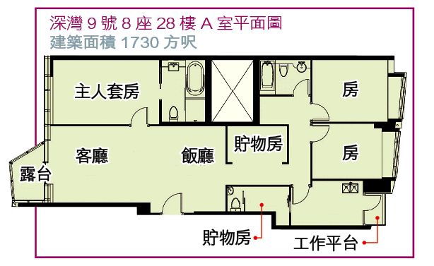 深灣9號共有6座26層高住宅組成,合共有411個單位,當中包括標準單位、複式單位及洋房,面積由745至5173方呎,間隔由一房至四房不等。當中有約八成是三房雙套房及四房三套房戶大宅,其中有兩成半至三成單位為特色戶,共約100個,包括相連、複式戶及天際大宅與別墅,預計明年底入伙。