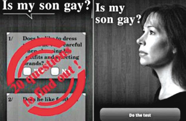 「你的兒子是同志嗎?」法國有程式開發商推出以這問題為名為手機程式(圖),透過20條問題協助家長了解兒子是否同性戀者,結果惹來同性戀組織炮轟,直斥程式荒謬和嚇人。