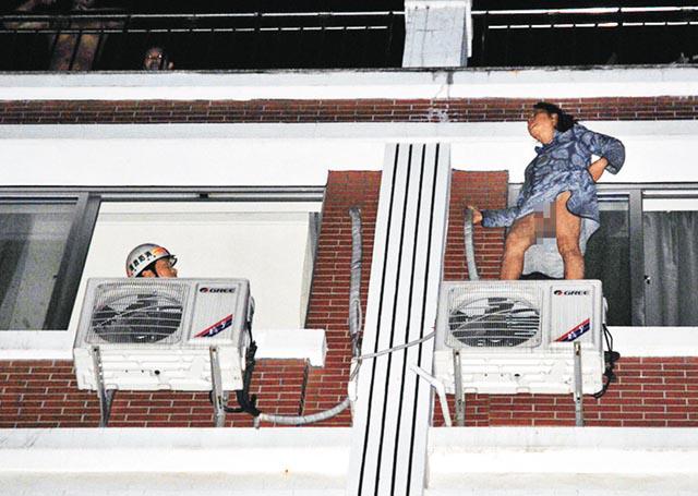 浙江溫嶺一名26歲陪酒女剛剛失婚,前日凌晨醉酒後,站在寓所四樓窗外的冷氣機散熱器上企圖跳樓自殺。