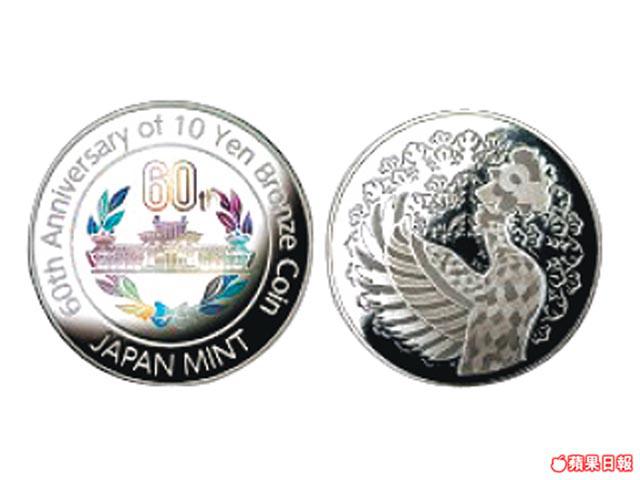 跟紙幣相比,日圓硬幣面值較小,幾十年來設計都無大改動,如10円青銅硬幣至今經已有60年歷史,日本造幣局就於今年東京造幣展期間推出紀念幣,除了刻有鳳凰圖案外,更有60周年紀念年樣,而且硬幣上鑄有顏色,限量推出3,000枚。