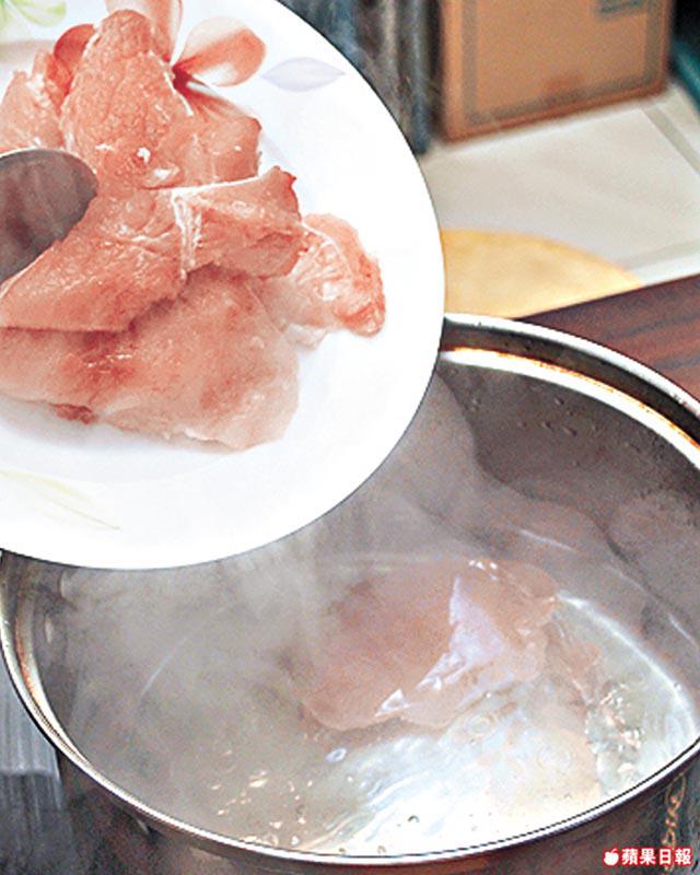 1.瘦肉切件,汆水備用。