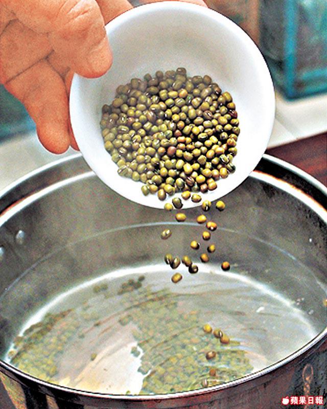 2.煲中加水、瘦肉、綠豆、陳皮、生地,開大火煮滾後轉細火煲2小時。
