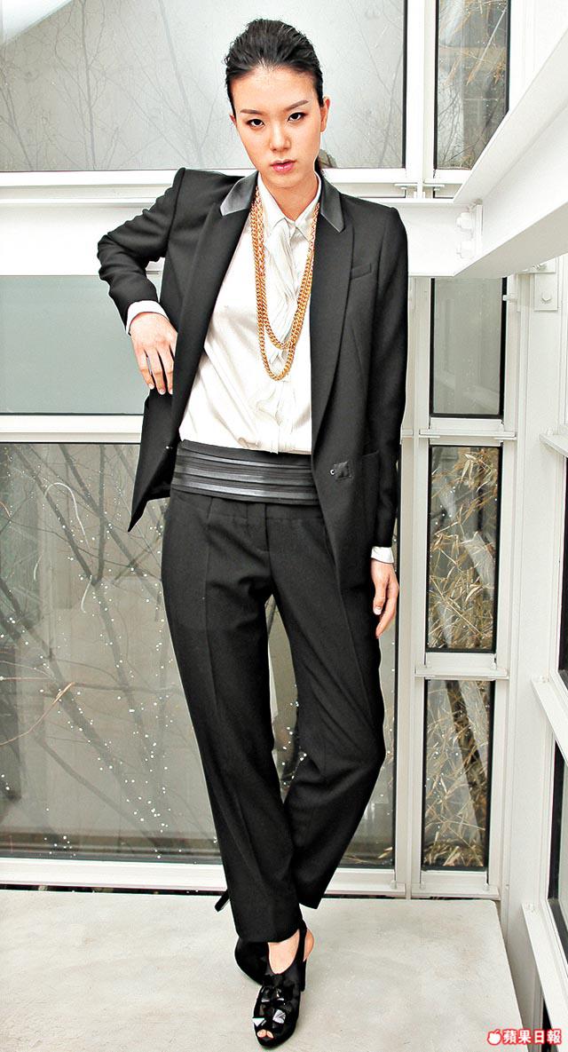 在BossBlack字典中,黑色可算是簽名式的色調,擔當everclassic的角色。今個系列在tuxedosuits、圓領tanktop、修長長褲都找到「黑影」。其他偏向濃色調的有啡、灰及藍色,盡顯Bosswoman的摩登氣質。