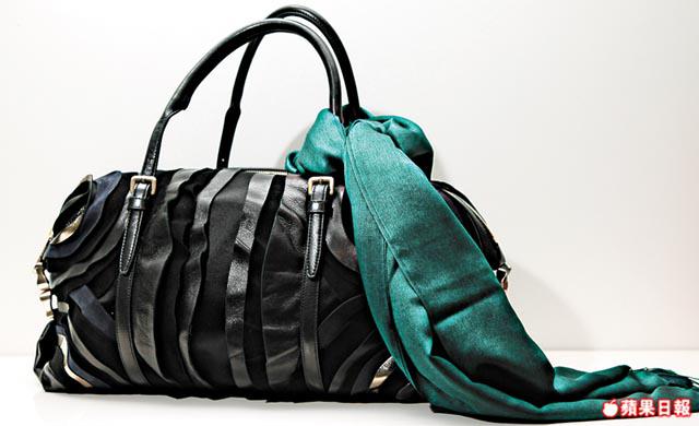 在accessory環節上,偏向小型的clutchbag,紅及藍色栢皮為主材,與黑色皮革組合出幻彩排列圖案;比例上較大的金屬釦細節,以長方線條的紅與藍色栢皮及黑皮框邊的組合,都從subtlebeauty的美學出發。