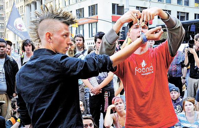 「佔領」行動的號召力,得來不易,真正的示威者開始容不下這些墮落。安迪里說:「如果我們發現一些警方要管的事,我們會先自己處理。我們希望每一個人都做好自己,和平有秩序,不用打擾來保護我們的警察。」但理想與現實,總有點距離。就像公園越堆越多的垃圾已令公園臭氣熏天,貪便宜、開放性交、吸毒都令「佔領」行動變成政治狂野派對。