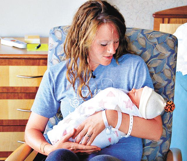 完成過八次馬拉松的米勒,懷着長子時也跑過馬拉松,今春也曾懷着女兒完成威斯康辛馬拉松,經驗豐富。「我是問准醫生才跑的,只是半跑半走,同時喝許多水,並不勉強自己。」大肚跑馬拉松不難。「分娩比馬拉松,辛苦得多了。」抱着女兒的米勒說(圖)。