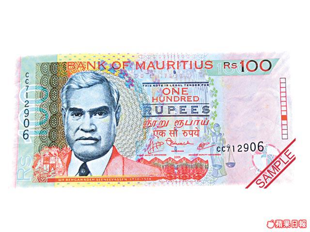毛里裘斯政府於1876年首度發行紙幣,當時只有5、10、50三種,直至1985年第五版印刷,紙幣才算完整,出現100元的貨幣,如今100元紙幣上的人像是MrRenganadenSeeneevassen本身是律師,後來成為教育局及傳統文化事務官,影響力強大。