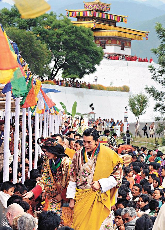 他是全球最年輕的國王,也被譽為「全球最英俊的國王」,31歲的不丹國王凱薩爾.旺楚克(JigmeKhesarNamgyelWangchuck)17歲時已對年僅7歲的民女佩瑪(JetsunPema)一見鍾情求婚,昨天(周四)履行14年前的婚約,迎娶青梅竹馬的小情人,為浪漫的愛情故事烙印。在不丹這片世界最後的香格里拉樂土上,舉國70萬樂民更是歡騰。