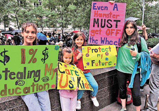 示威者也許未必深思熟慮過近月的抗爭最終何去何從,有些人只是出來申訴幾句,然後又回家默默承受經濟衰退與社會不公義的苦果。單親媽媽CobiCronen帶着三個女兒來示威,36歲的她現在還未償清學生時代的5萬美元貸款,而她每年收入只有2.8萬美元,工作是教師助理。