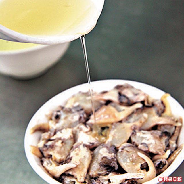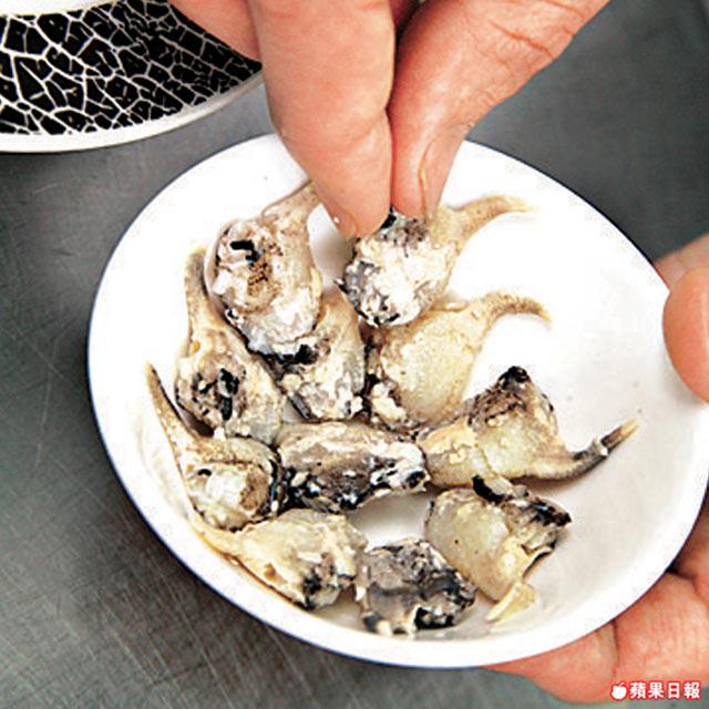蟹箝肉60隻、雞湯100毫升、雞脂肪10克、薑/葱/醋各少許