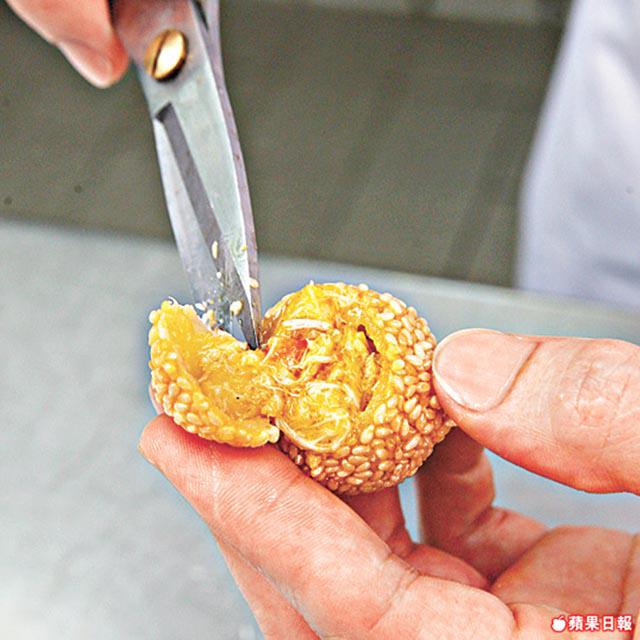 平日常吃的芝麻球,配上矜貴蟹黃,一口咬下去,皮脆內軟,蟹粉的油香在口腔內噴發,又不會掩蓋芝麻香,正!