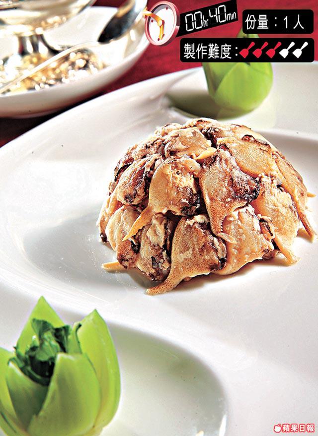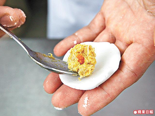 餡料:蟹肉120克、蟹黃15克、薑茸1茶匙、雞粉/鹽各少許、雞湯16毫升