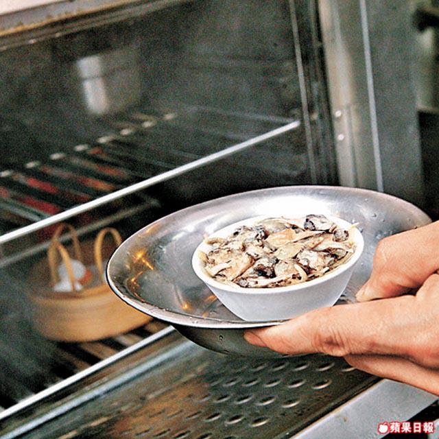 2.蟹箝加調味料略醃,由碗底沿邊排,叠至全滿,下雞湯和雞油,以大火蒸8至10分鐘。