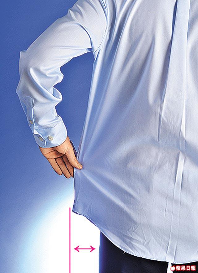 衫身鬆緊視乎個人喜好,一般預留4至6吋空間方便郁動。喜緊身剪裁的則可留3吋。將衫身拉向一邊,量度衫與腰位之間的距離即可。