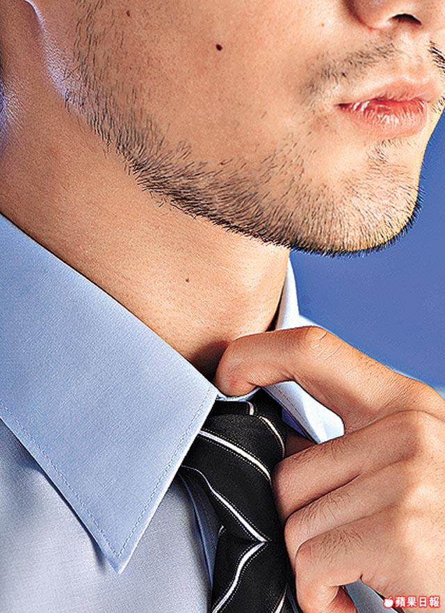 扣上頂鈕後,領口跟頸項之間要在一隻手指位之內,太緊看來「頸肉橫生」甚至影響呼吸,太鬆的話,繫上領呔後會令領口出現皺褶,影響筆挺衫形。