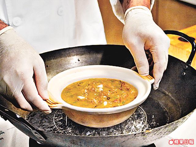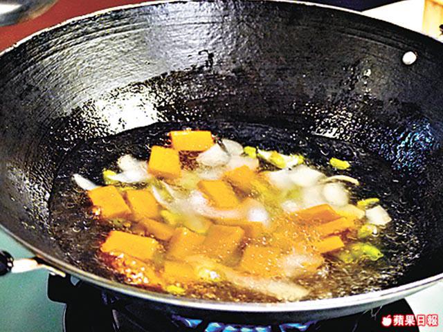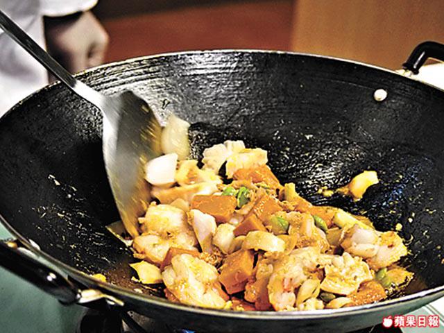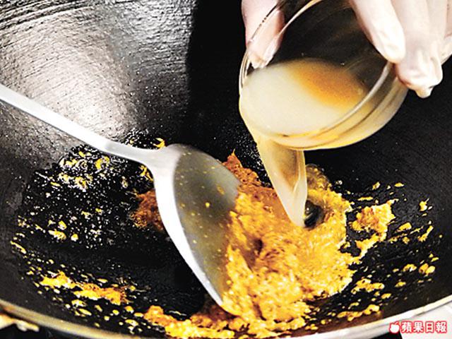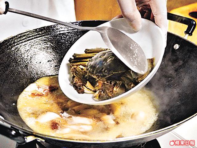 蟹粉先用油鑊爆香,才下其他材料齊炒,鮮味會更突出。