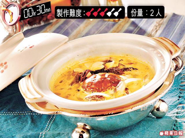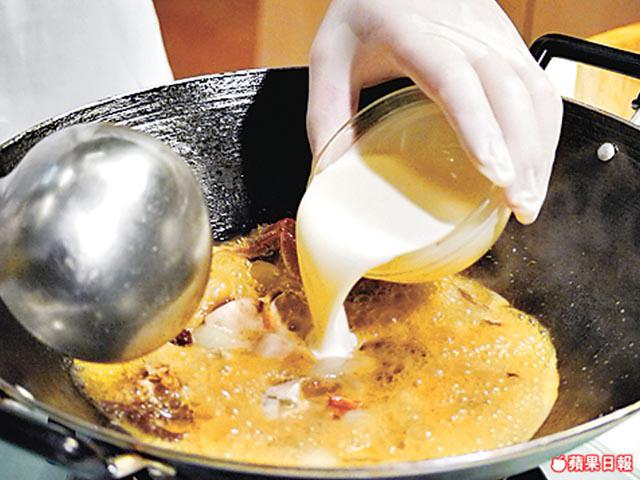 大閘蟹將熟時才下白酒和忌廉,除了能保留酒香,且不會容易煮焦。