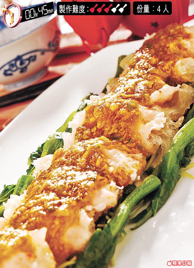 蟹粉配上鱔肚和蝦膠,鮮味十足,配搭創新,賣相還很美呢!