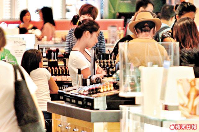買衫唔成的青霞,之後再接再厲偕女兒及陶敏明到一大型化妝品店血拼,雖然當時店舖逼滿人群,青霞又是知名大美人,但她無懼他人奇異目光,跟其他女士一樣在化妝counter左試右試;長得亭亭玉立的愛林對化妝品也甚有興趣,不時拿起貨品跟青霞研究。青霞對化妝品牌BobbiBrown的粉底最有興趣,着化妝小姐為她掃粉,見青霞笑笑口左照右照,看來十分滿意。揀完胭脂粉底後,青霞再偕女兒揀唇膏,最後買了大袋化妝品離開。血拼一輪後,青霞便偕兩女及陶敏明乘車返回飛鵝山寓所休息。