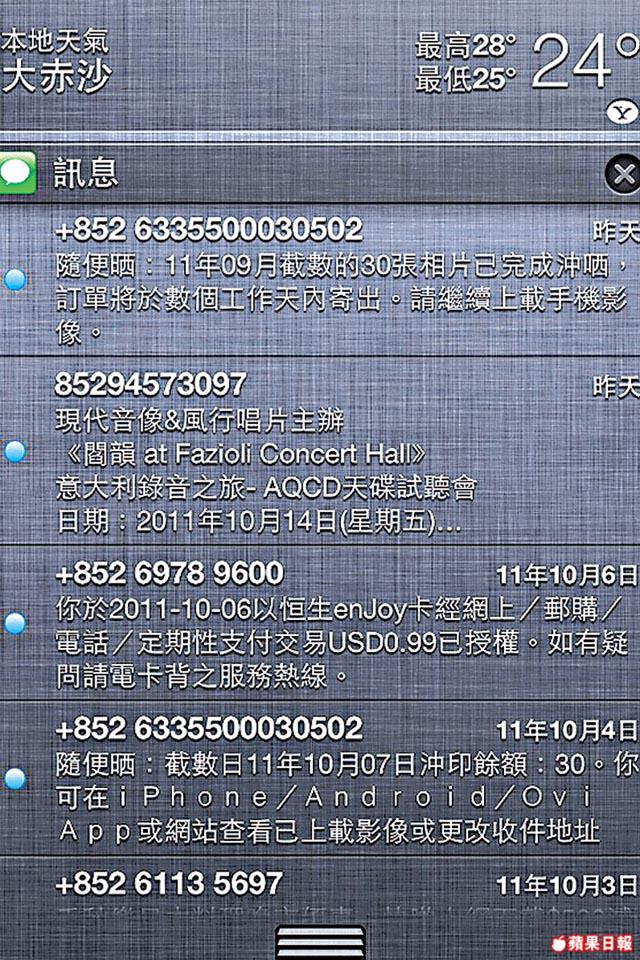 新加嘅「通知中心」,無論E-Mail、SMS、行事曆等等,有咩通知都會喺畫面上方短暫出現,而你可從畫面最上方向下一拉,就Show晒所有未閱覽過嘅通知,仲有埋天氣同股市,感覺有啲似Android,方便過以前逐樣Check。