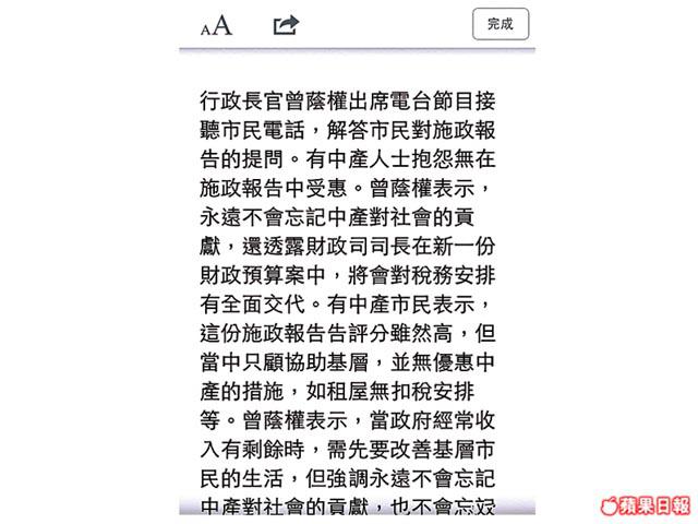 用iPhone上網,遇着廣告多、欄位又多嘅網頁,屏幕唔大真係幾頭痕。今次《Safari》就解決咗呢類問題,只要一按網址隔籬嘅「閱讀器」鍵,網頁即時會去除廣告並排好文章,仲可選擇字體大小,上下拉動就可以睇晒段文,唔使放大縮細左郁右郁咁麻煩。