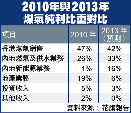 花旗在視察煤氣的陝西煤層氣項目後發表報告,指該項目回報理想,料新能源業務佔煤氣總純利比重,將在2013年升至16%,較2010年時的1%大幅增加。不過,該行認為,雖然陝西煤層氣的新能源項目回報理想,惟礙於上游供應問題,日後發展有限。