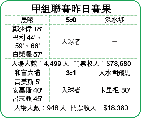兩年冇見,旺角大球場這位「老朋友」依然好客,重建後昨首次舉行晨曦對深水埗的港甲,4,499名球迷慕名而來入場支持,絕對是旺角最旺的角落。最開心還是在此射入歷史第一球、協助晨曦大勝5:0的「港版亨利」鄭少偉,他賽後高呼︰「始終都是旺角場最好!」