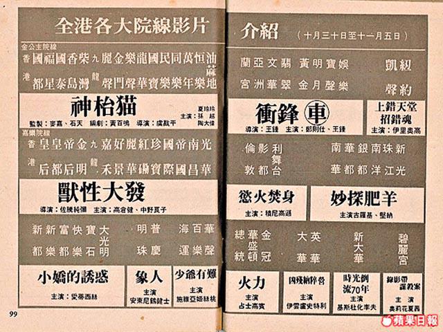 至於日活的動作片,仲偏鋒!「外國人稱此為NikkatsuAction(日活動作片),他們的動作片好玩嘢!首先,即使是動作片,他們拍的都不是傳統打不死的英雄片,主角多是低下層、小市民。其中鈴木清順拍的《殺之烙印》、《關東無宿》就十分之Cult,他可以拍拍吓黑白,完全無理由下突然變成彩色,導演只是想打破所有規則,所以電影的節奏跳得好犀利。今屆亞洲電影節之中放映的《極道兵器》、《鐵甲萬能俠》(放在『亞洲超級英雄』的環節)俱為日活出品,可見到日活的玩嘢風格,《鐵甲》類似特攝片,造型古怪;《極道兵器》更古怪,片中角色的手臂,可以突然變成機關槍發射,女性的下體又可以突然變成武器,發射子彈!」