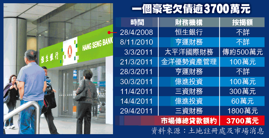 據悉,三資財務為該物業最大債主,現以最大債主身份接管放售物業,並代債仔繼續供樓,因為物業萬一斷供,會被一按債權人收回物業,到時便血本無歸。雖然單位現只值約3100萬元,但單位要賣到3800萬元才夠冚其他債務,否則財務公司都要蝕本。