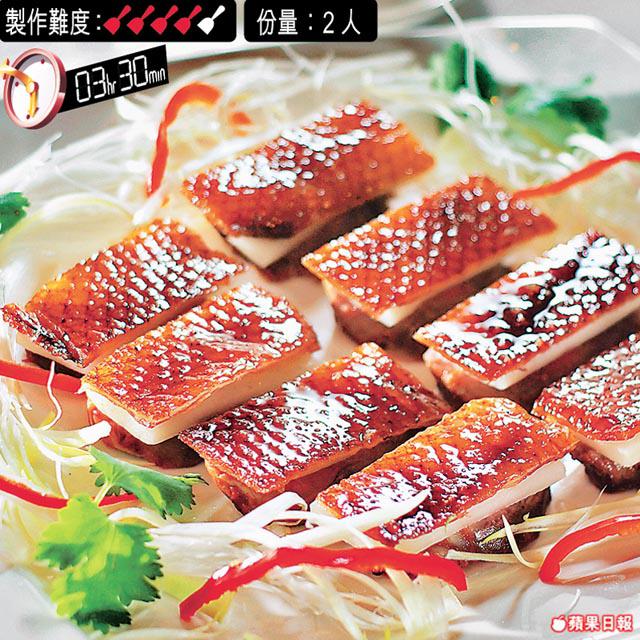 何解要先起皮再夾鴨胸同吃?絕非廚師無聊而畫蛇添足,而是鴨皮淋上糖醋水,風乾後炸,鴨皮變得很爽脆,再夾清脆的青瓜,可以增加鴨胸口感!