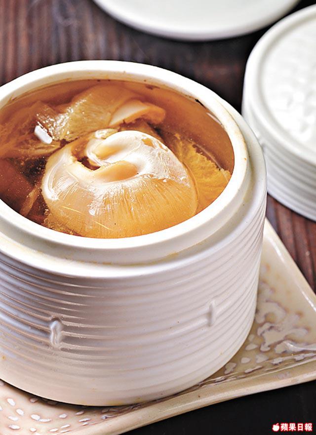 必吃推介還有明太子花竹蝦,開邊燒至半熟,塗用蛋黃醬和沙律醬混合而成的明太子醬,肉質如蝦膏般幼滑,鮮味十足。新西蘭蟶子王八至十吋長,去內臟加紹酒一燒,上桌前灑葱花,肉質彈牙帶陣陣酒香。法式鵝肝多士,正宗法國鵝肝燒至外脆內軟,配烘到脆身的多士一起吃,脆上加脆。為吸引食客,這店還推出足料雞燉翅,選用名貴金山勾仔翅,加去皮雞、瘦肉、日本乾元貝和金華火腿燉足八小時,味道濃郁,我Buy。