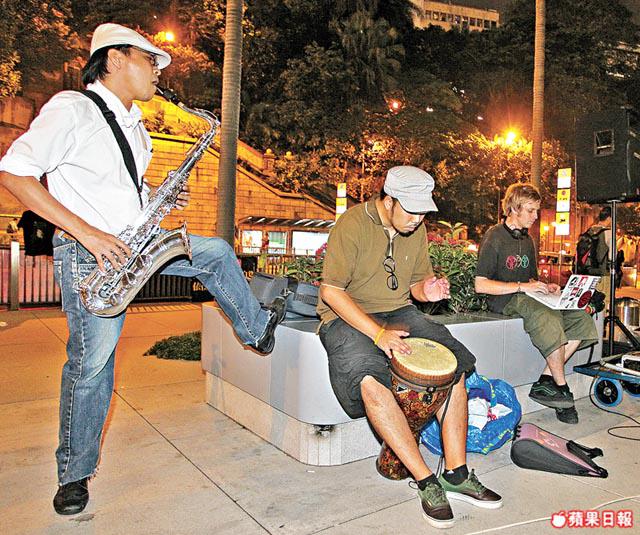 【本報訊】佔領中環行動人數越來越多,前晚有60人在滙豐總行地下的公共空間留宿,比前天多10人。示威者建立的小社區逐漸成形,每天晚上舉辦音樂會或電影放映會等。獨立音樂表演場地HiddenAgenda昨晚由工廈移師滙豐,於中環街頭舉行樂隊表演,下一場暫訂明晚8時。示威者將於網站公佈今晚活動資訊。