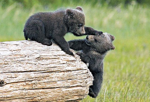 美國阿拉斯加州一對幼熊兄弟,在倒塌的樹幹上打架,拳來拳往,甚至張嘴噬咬,其中一隻小熊不敵熊拳威力,要抓住樹幹邊「求饒」。拍到這場面的加拿大攝影師勒庫爾斯相信,兩隻小熊是為了練習打鬥技巧才這樣做,打起上來像玩耍,當牠們練完拳後,就乖乖回到熊媽媽身邊,非常可愛。英國《每日郵報》