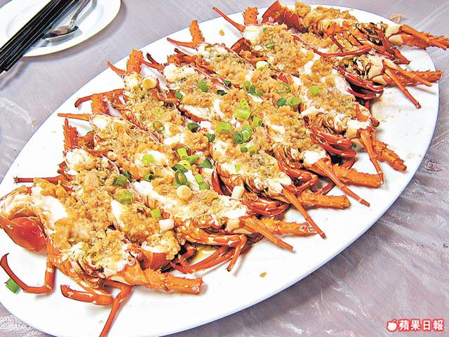 這次飯局焦點所在,本地龍蝦差不多絕迹市面,每天只捕獲幾隻,這裏共七十多隻已儲了好幾星期。開邊蒸,肉質幼細,嫩滑鮮美,而且隻隻頂膏,有錢也未必吃到。