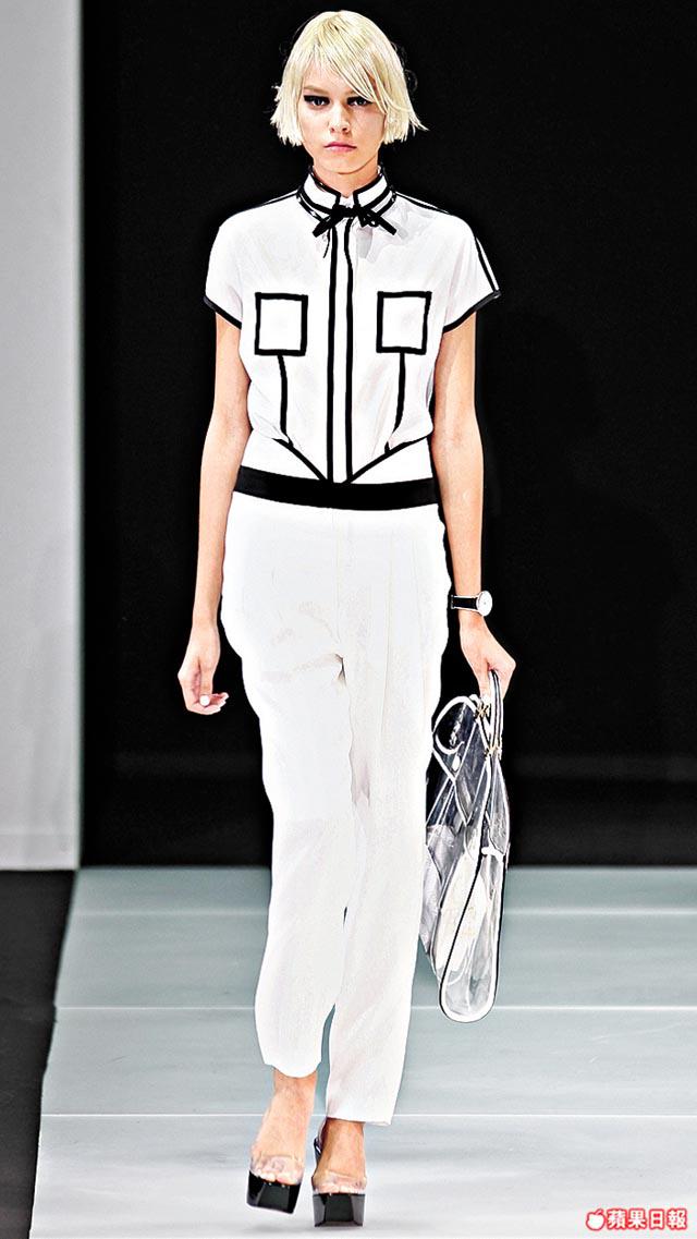【米蘭直擊】EmporioArmani2012年春夏新裝,以新設計(Neodesign)為主題,利用黑白兩大主色貫穿整個collection,優雅大師GiorgioArmani重新定義了物質與空間之間的方程式,立體的流線型造出時尚與富藝術感的嶄新輪廓與線條。