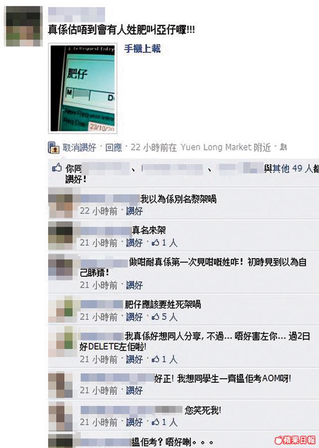 【本報訊】屯門醫院一名護士將真實姓名叫「肥仔」智障男病人病歷上載到facebook取笑,事件引起個人資料私隱專員公署關注,公署昨表示會主動向醫院管理局了解。院方雖然已展開了紀律程序,研究是否處分涉事護士,但卻無意將個案轉交護士管理局跟進。由於肥仔並無親人,難以代為申訴,令事件隨時會不了了之。記者:鍾麗霞