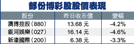 一直有借錢予中介人的澳博控股(880),其執行董事兼行政總裁蘇樹輝回覆本報時稱,未見到賭團及博彩中介人需要自澳博方面增加取用信貸。