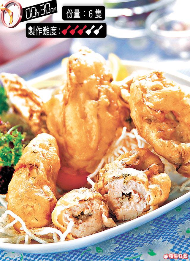 脆漿:麪粉/水各4湯匙、生粉2湯匙、自發粉/糖/橄欖油各1茶匙、鹽/胡椒粉/香草各少許