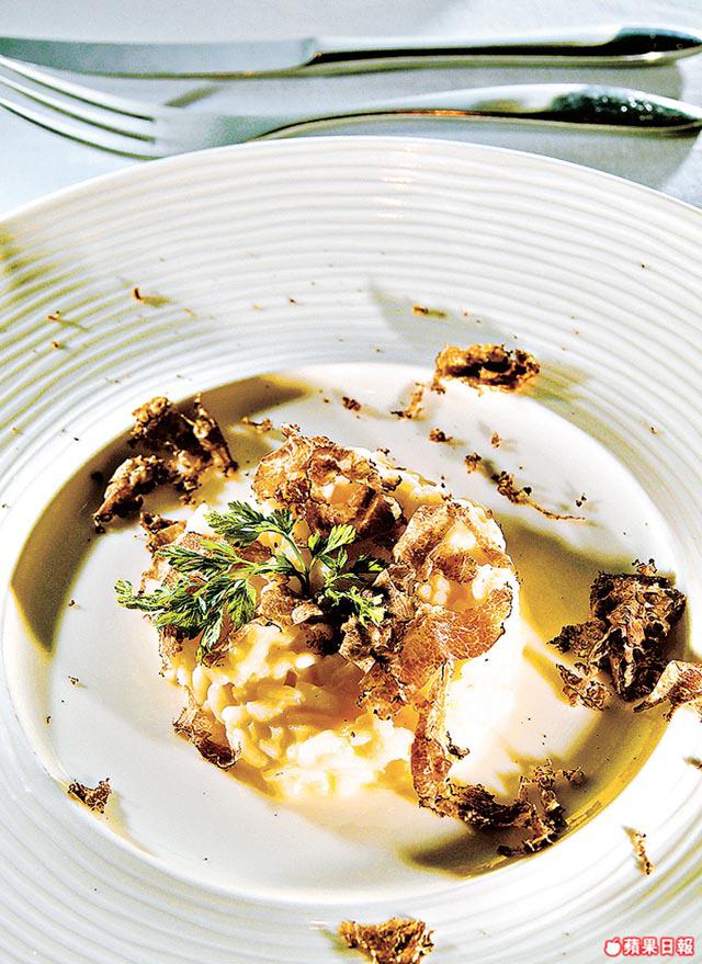 中國人愛吃米飯,所以大廚精心炮製了一道意大利麥飯,傳統做法,用香蒜、橄欖油和芝士煮正宗意大利圓米,上桌前灑幾片黑松露添香。為免掩蓋黑松露濃香,配酒不可太濃味,喝意大利InsogliodelCinghialeMagnum2009就最好不過了,預先雪凍至最佳溫度16℃,呷一口酒,口腔變得冰凉,之後你會發覺,再來的一口意大利飯會更香濃。