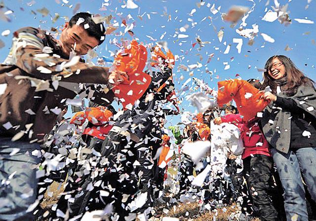 各地都有助人「脫光」的活動,在浙江杭州,當地推出「約會巴士」,在車上貼上六名單身司機的聯絡資料,希望有緣的乘客看到,能與他們開花結果;江蘇揚州大學更舉行光棍節活動,學生拿着廢紙製成的枕頭,大打枕頭戰,藉此讓男女同學聯絡感情。