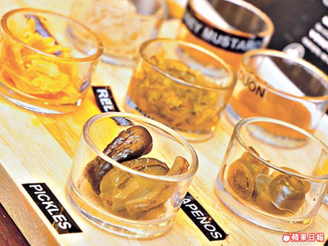客人可自由點選麪包、肉腸、配菜及芥末自製熱狗餐,負責人推介兩款新肉腸Bourbon及Lemon,前者混合牛肉及豬肉,肉味濃郁,特別之處是加入烈酒威士忌,酒香與肉汁同時在口腔迸發,好惹味,配Darkrye就最夾!Jancy:「從沒想過有威士忌味的熱狗,放心吃不醉人的。」後者是混合了四種果汁的雞肉腸,味道清新,味道有點似西檸雞,與Signaturebun是絕配。